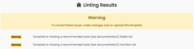 - Warning – The template passed basic linting checks but might not give you the results you want