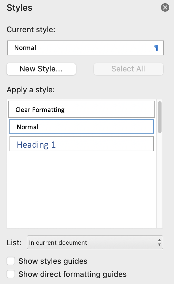 If you’d like to check a Word template’s available styles before uploading, open the template in Word and follow these steps:- Under the ribbon’s Home tab, go to the styles gallery and locate the Styles Pane button